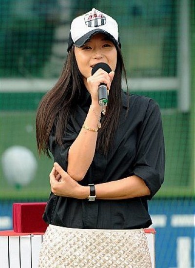 卷发的全智贤戴着一顶小帽子,不仅帅气,而且性感。