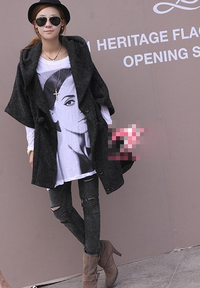 中袖披肩外套和穿孔牛仔布打造超模风格