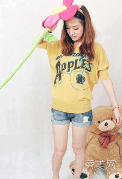 袖中字母条纹t恤,玩着自己的个性色彩,经典的款式再加上今年夏天超流行的糖果色,款式新颖,颜色鲜艳,立刻就亮了起来哦。短裤配新鲜空气,非常舒适,非常相配。