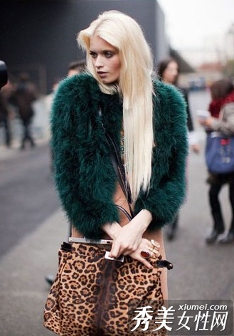 豹纹的性感诱惑是不可抗拒的。 豹皮在这个季节是不可抗拒的,但是作为一个新的时尚明星,你怎么能容忍跟随潮流而没有个性,选择一个替代的复古颜色的短款皮草,并用豹皮包来点缀整体造型呢?一场独特的比赛会让你轻松成为公众的焦点。