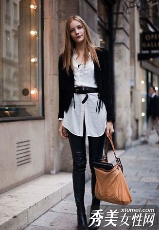 酷而时尚的外观 轻柔轻盈的开衫搭配凉爽帅气的皮裤,让你既展现女性的一面,又不失时尚气息。如果你用黑色和白色来渲染整体氛围,包的颜色会尽量避免相同颜色重复带来的单调。