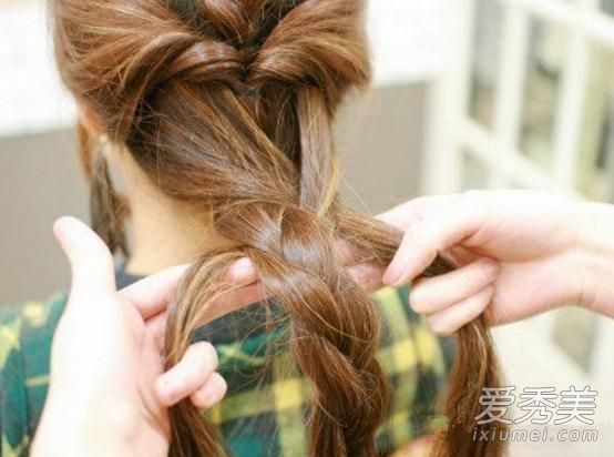 两边散落的头发向内旋转集中在中间,然后与头顶中间的三股辫子结合在一起!(现在它将暂时成为公主头)
