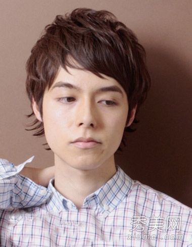 这种凌乱蓬松的烫发风格,留着长长的遮住眉毛的刘海,头发略微卷曲,有点俏皮。