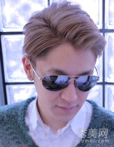 这位时尚男士的短发、梳理整齐的顺滑头发、金色的发色和帅气的太阳镜,让时尚感倍增。