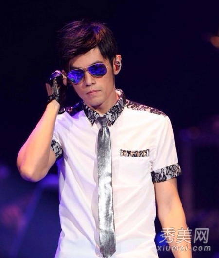 周杰伦的短发有一张装饰有斜刘海的长脸,而火辣的玉米发型只会增加他的帅气个性。