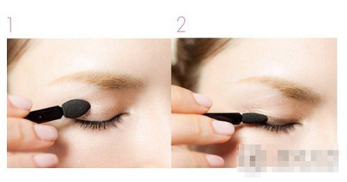 2.沿着从内眦到外眦到双眼皮的方向均匀涂抹深棕色。