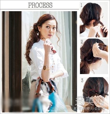 炎热的夏天对有大量多余头发的长卷发来说是最痛苦的。这是一个非常经典的发型,把一些头发扎在脑后,随意地打一个橡皮筋或一个小钻戒,但它也会有些单调。现在介绍的发型就是在此基础上做一些小小的改变,将分开的头发在一边扭曲打结,这样扭曲的发型看起来更休闲、更有创意,整个发型变得时尚。