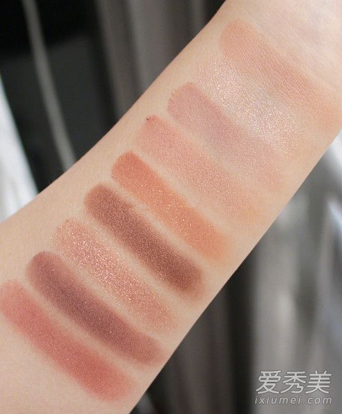手臂颜色测试,显色性很高,用化妆刷涂抹不会结块,整体只有2左右磨砂,其他都是闪光型。