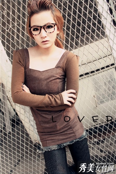 毛料拼接皮革短摩托车夹克,正面拉链是斜的,很小的MM推荐都拉着穿,这是不同的款式,欧范的薄款MM超级推荐。