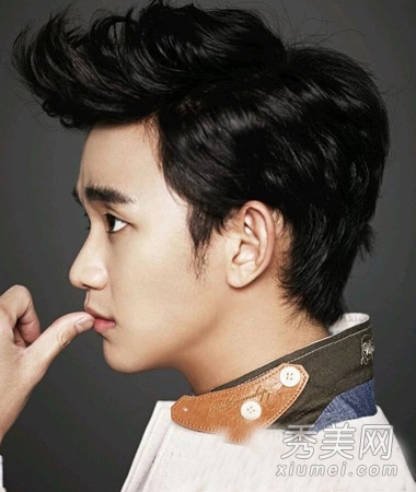 蓬松而立体的头顶是这个男孩飞天发型照片的最大特点。头顶的形状也是一种前额的形状。如果是方形前额,头顶的头发可以设计得更宽,以改变脸型。高度由脸型决定。对于这种拉长脸型的设计,如果脸型较长,建议降低高度。