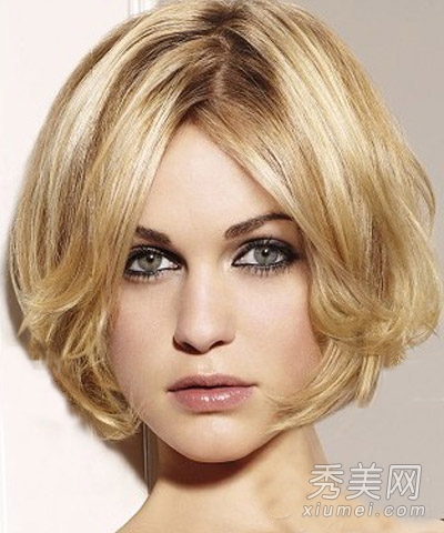 风格10:这种短发风格采用非常蓬松的发型设计,形成宽顶窄底的整体感觉,拉伸五个面部特征的比例,缩小面部的视觉尺寸,完美修饰面部形状。