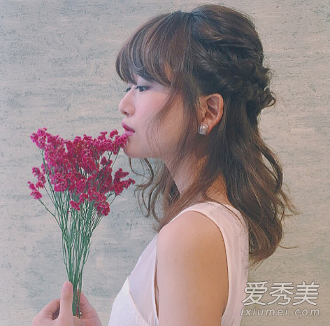 你也可以添加一些编结的头发,像公主的头一样从两边拉一些头发,扭曲它并用夹子固定它。稍微浪漫一点的小女人氛围,普通的约会或者出去玩都很合适!