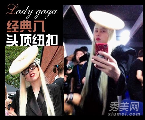 不仅女演员喜欢GAGA,男明星也忍不住加入模仿团队。超级少年乐队成员金希澈曾经在他的微博上贴了一张模仿Lady gaga的照片,引起了粉丝们的注意。另一个高知名度的经典模型。头顶上这么大的一颗纽扣有点重,但幸运的是它能挡住风雨。黑框眼镜下的眼妆相对较浅。