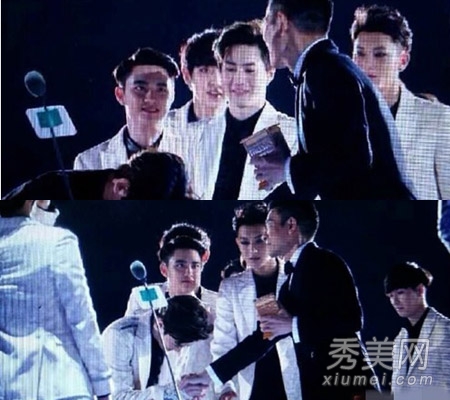 图片:刘德华为EXO颁奖,由此透露出“EXO用一只手接过奖杯是不尊重的”的消息。