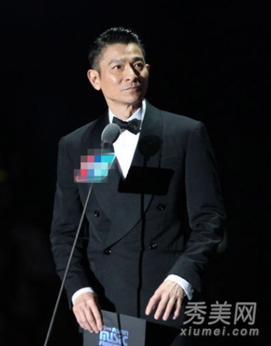 刘德华最近看了看他英俊的油性头发和黑色西装。他非常英俊。你不需要刘海的遮盖,露出完整的脸才是最帅的。