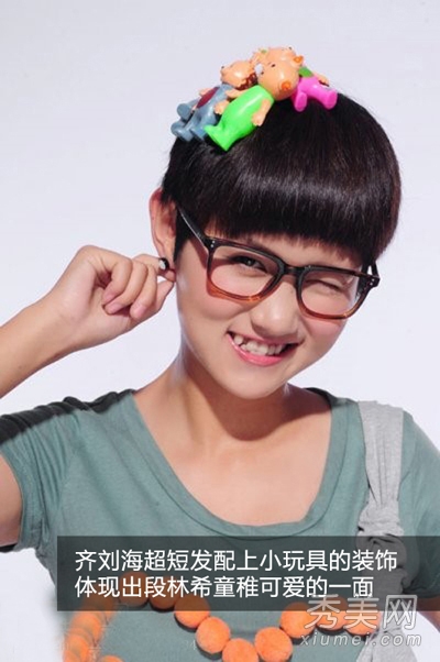 刘忻放弃了长发风格,选择了短发风格,但仍然没有失去女孩的甜美感觉,有点帅。