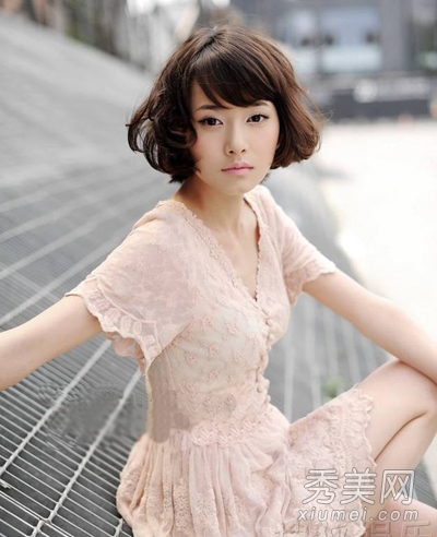 半圆形的刘海,简单随意的短发,搭配一点荷叶边和短裙,充满了韩国女孩的味道。