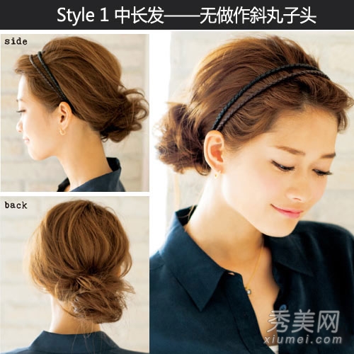 1.中等长度的头发——不矫揉造作,倾斜的肉丸头
