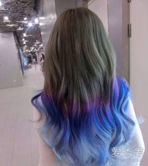 蓝色裙子染发是今年女孩最流行的发型。灰蓝色的长卷发看起来像魔女的头发,神秘而梦幻。