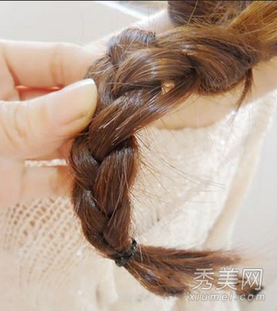 第五步:当背部没有头发时,按照辫子的编织方法编织。剩下的头发弄好后,用橡皮筋绑起来。