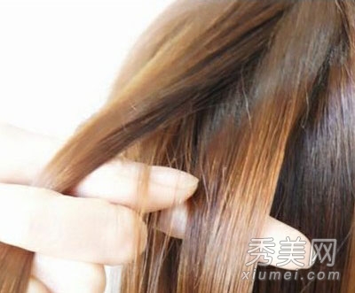 第一步,从头部的左上方,取适量的头发,将头发分成三束。