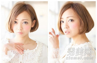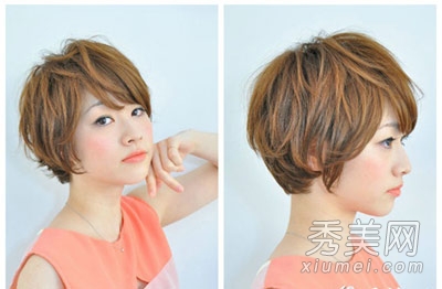 可爱的斜刘海,短卷发散发出甜美的味道。新鲜的头发让人看起来更瘦更高。发色非常时尚,短发女孩是不错的选择。