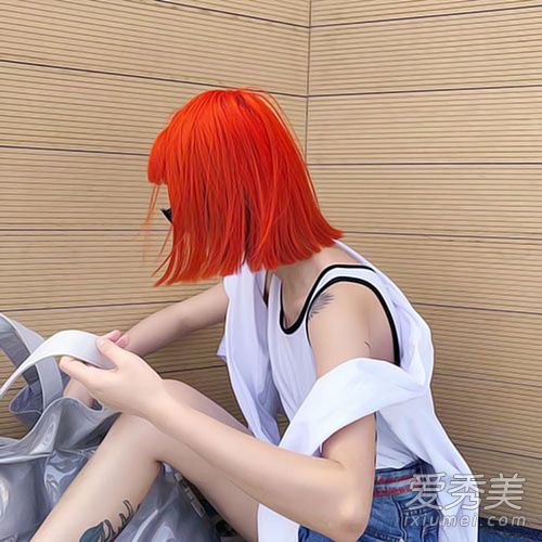 超亮橙色短发,高亮度橙色眼睛吸收指数,但不失去红色!热情和个性,短发是一个资本的眼睛!如果你碰巧剪了这么长的头发,你不妨试试这种发型。如果你想把头发染得和照片一样清晰,你必须把它漂白。