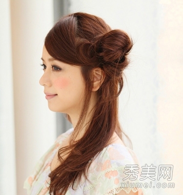 副作用,流行和突出的公主头。单面肉丸头非常可爱,可以转移焦点,让你的脸变小。