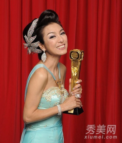 在颁奖仪式上,头发非常端庄,大花朵形状的发饰搭配得当。