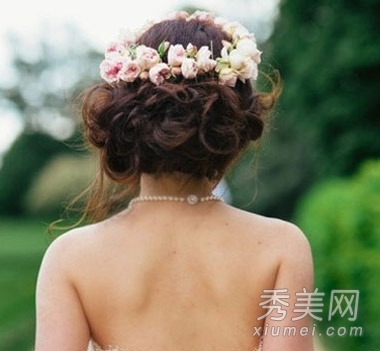 清新的乡村是新娘的发型。卷发看起来独特而迷人。用鲜花编织的花环散发出迷人的魅力,有一点复古的感觉。这个发型显示了新娘的优雅!