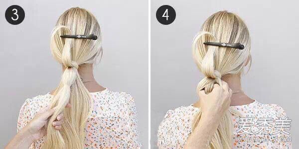 第一步:把所有的头发扎成一个低的马尾辫,拿一小束头发绕在发带上,然后用一个钢夹子把头发绑起来。