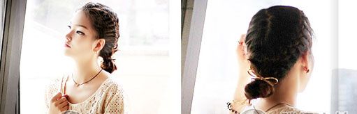 小贴士:目前流行的“蝎子辫子”线条简洁而迷人,可以尝试不用长发。系橡皮筋时最好把发梢藏起来。