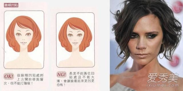 如果说圆脸的眉毛会因为自己的包子而苦恼,那么凹陷的眉毛会因为双颊没有肉而苦恼。对于这种脸型的女孩,修剪刘海时,必须从脸颊凹陷处开始。