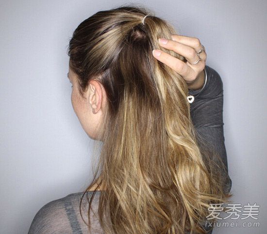第四步:用另一根头绳卷住马尾,松开两边的头发。