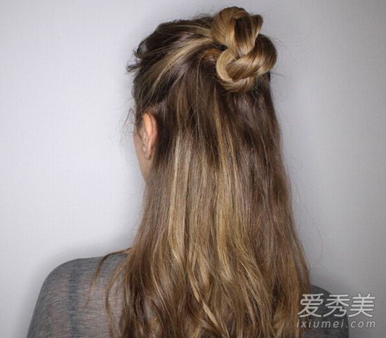 第五步:在头发末端打一个结,然后用头绳绑起来。