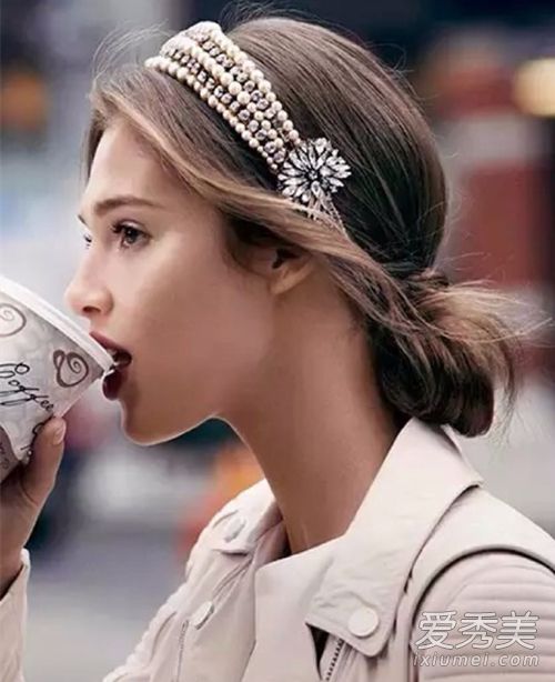 如果你觉得以前太乱了,你可以考虑这种发型,扎一个低马尾,用发带绑在脑后,既慵懒又随意。
