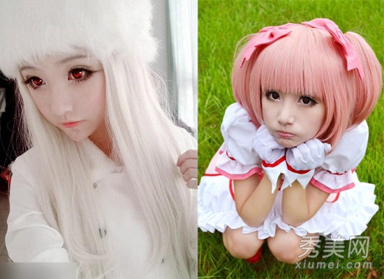 这两张角色扮演照片看起来更像芭比娃娃。白色的长发和粉色的短发衬托出白皙的皮肤。