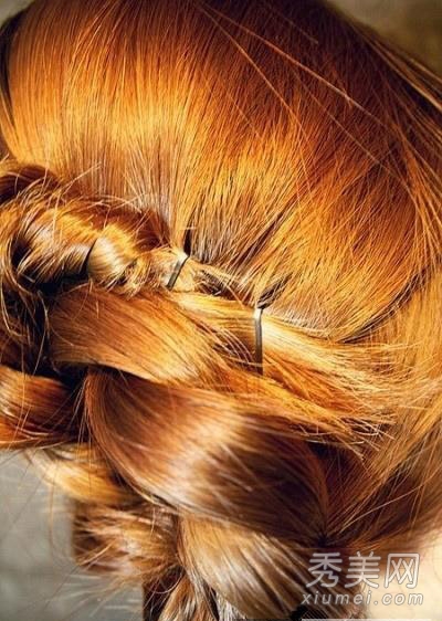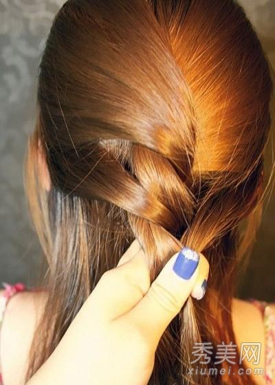 第三步:交叉重叠。重叠时,将单束头发稍微扭转一点。