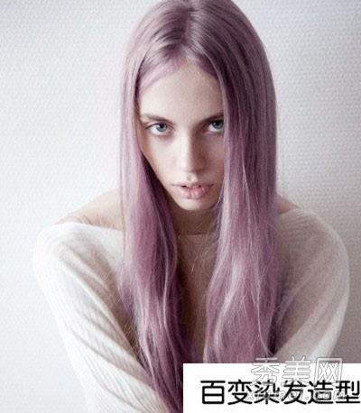 原来简单的分体式发型被染成逐渐变化的紫色后,有一种低调另类的感觉,性感程度明显。