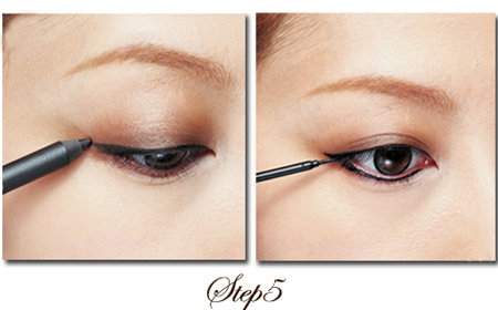 步骤分析:首先,用黑色眼线笔从头部开始画,贴在睫毛根部,然后画到眼角。画一条平滑的眼线。稍微加厚眼尾,让眼睛看起来更深。然后,仔细画眼线以加深眼线的效果。