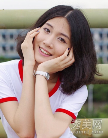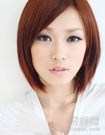 这种内扣发式非常适合脸型大而方的女孩。斜刘海和两颊的头发结合在一起盖住肉。巧妙的发尾设计,让头发更清新、更甜美,红棕色对皮肤非常友好。