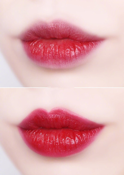 唇膏的质地更湿润,所以它的颜色比唇彩要浅。