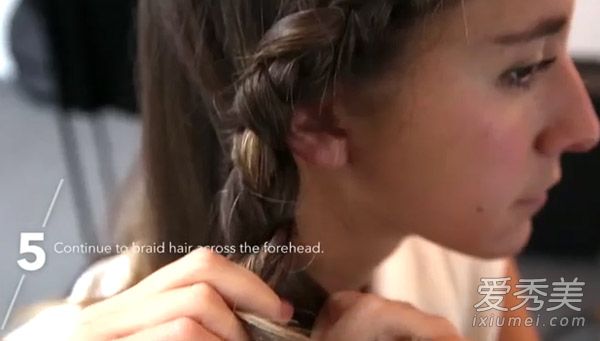 5.当编织到耳朵,结合另一束头发,继续编织。