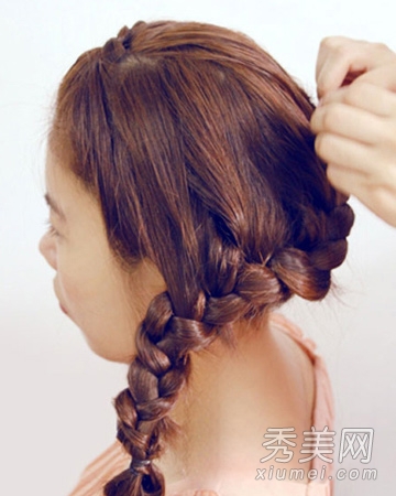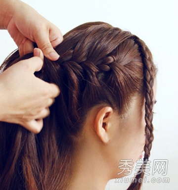 第五步:头发多的女孩应该在编织的时候牢牢抓住头发。