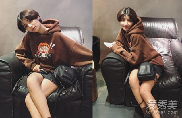 短发夹着短短的耳朵,短发看起来在中间发芽,女孩感觉很丰满。
