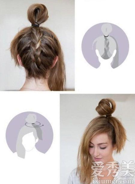 在被编织到头顶之后,它被绑成一个半绑的球头,并且前面的头发仍然处于分布状态。