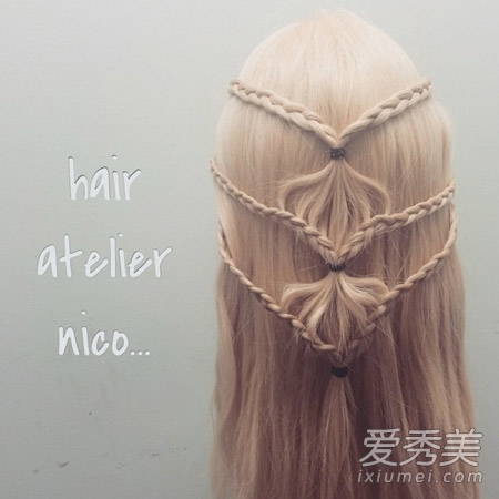 不同于传统的凤尾蕨编带,编织部分分为两段完成,非常时尚。编织部分用蝴蝶结打结,使长卷发散发出最大的魅力。