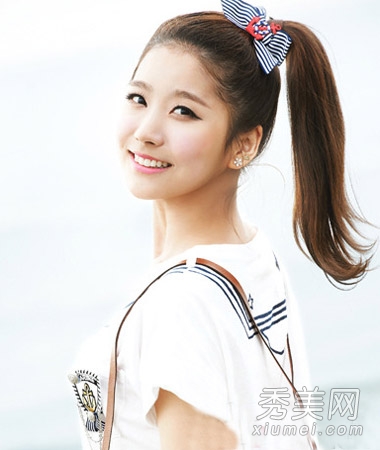 最简单易用的韩国肉丸都扎了头发。MM们肯定会用长发扎头发的方法。高高的发髻非常有活力。前额露在外面的头发自然地垂在两鬓之间的长长的鬓角上,非常甜美而有女人味。