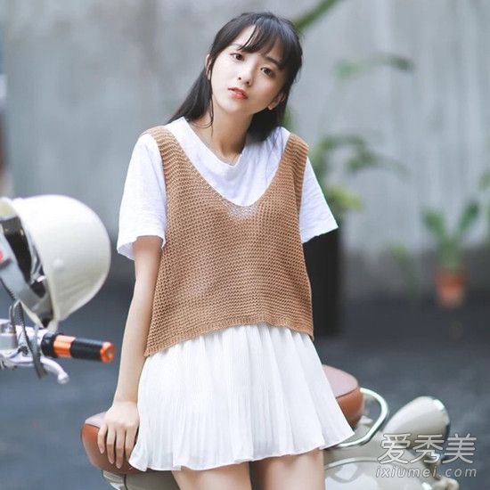 学生喜欢的长发、齐肩长发+平刘海既甜美又清新,而白色短裙则甜美又能降低年龄。