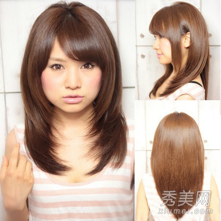头发又直又烫,更容易打理。头发颜色醒目,与肤色相配,刘海距眼睛只有一条线,脸型比例正确,头发多层次修剪,头发蓬松,小脸出现,瘦脸效果好,适合圆脸或长脸的mm。